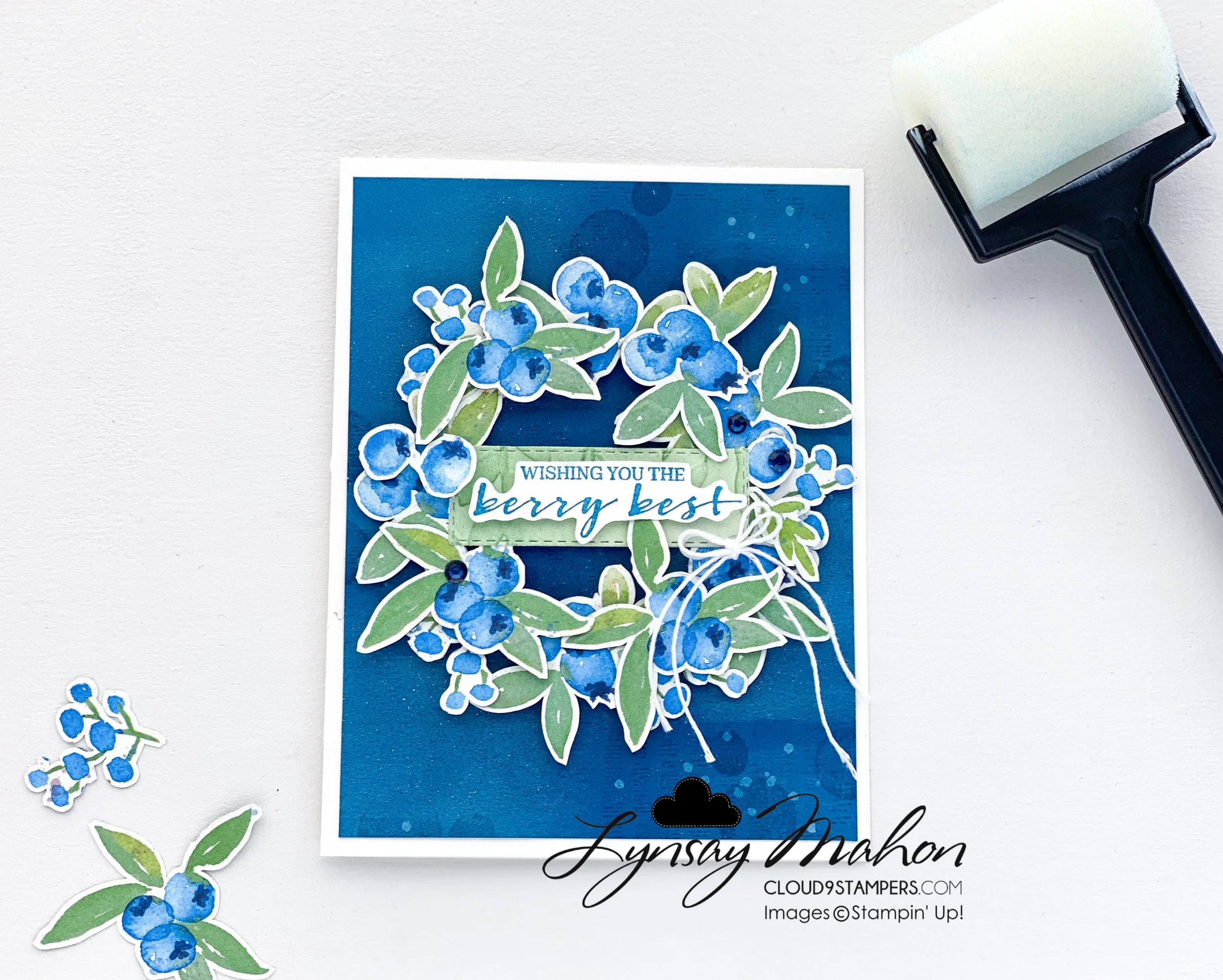 The circle makes a perfect form for layering the blueberry images that were fussy cut from the Designer Series Paper.
