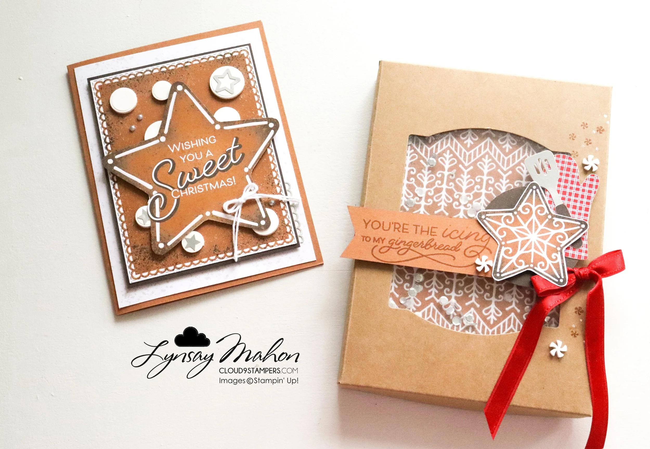 The first project is a Christmas Card showcasing the Gingerbread & Peppermint Memories & More Card Pack and the Gingerbread & Peppermint Memories & More Cards & Envelopes. I also brought in the coordinating Frosted Gingerbread Bundle.
