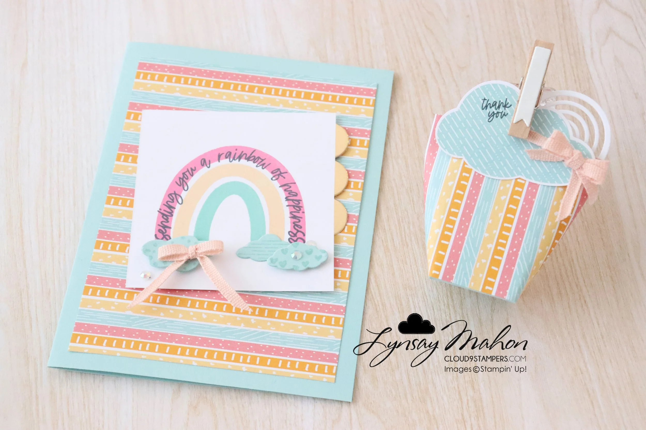 The best part is during January and February Stampin' Up! has a Saleabration event and there is incredible 6"x6" paper that coordinates with the bundle called Sunshine & Rainbows. I used both the bundle and the paper on these projects.
