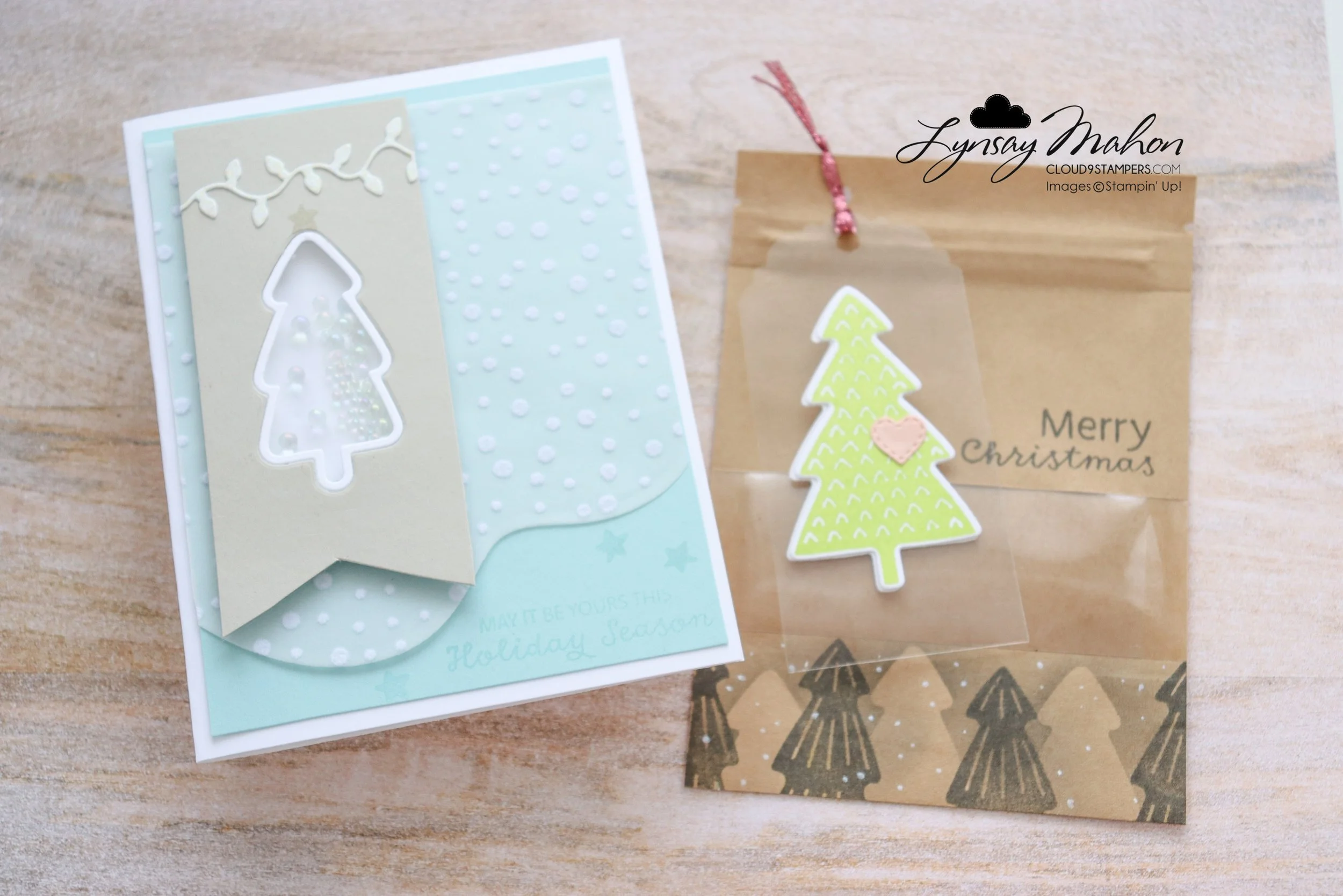 The first project is a shaker card. I used the die to cut out the tree shape and then used the Effervescent Elements as the shaker elements.