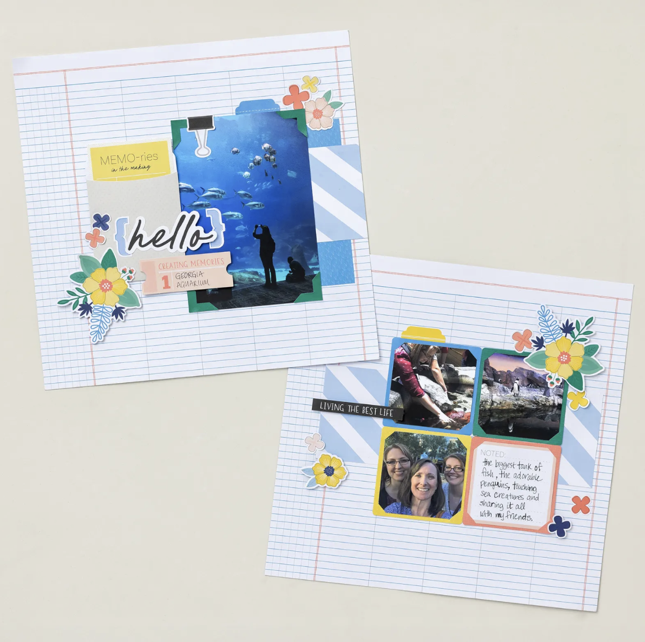 What I love most about this kit is how effortlessly it turns “I should scrapbook that someday” into done. The layouts are thoughtfully designed, the pieces actually coordinate (imagine that!), and suddenly you’re not staring at a blank page. You’re building something that feels like you. A day at the aquarium, a laugh with friends, a moment that would’ve otherwise drifted away? Now it has a home!